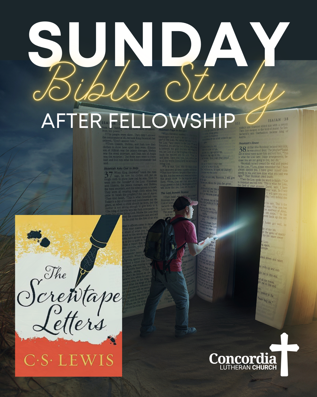 A (mostly) weekly meeting of Concordia’s men who meet informally to work through a book guiding them through scripture.